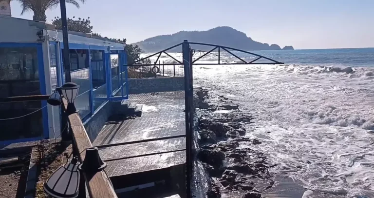 Огромная волна, вызванная сильным ветром, достигла ресторана в Аланье и повлияла на тех, кто занимался уборкой.