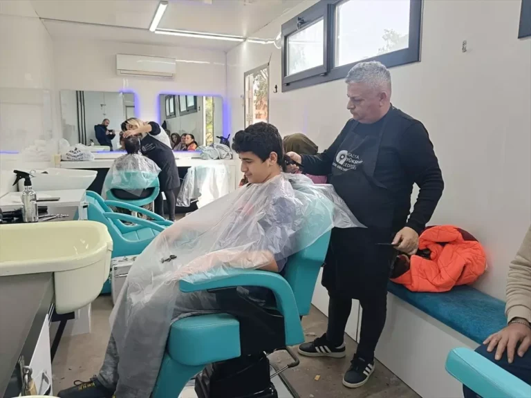 Муниципалитет Антальи предоставил услуги мобильного парикмахерского грузовика жителям перед праздником Рамазан.