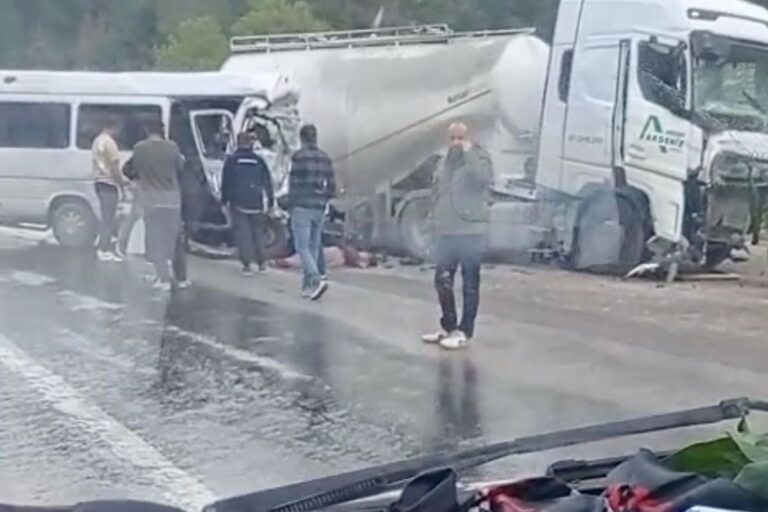 На трассе Анталья-Испарта в результате столкновения микроавтобуса, перевозившего сельскохозяйственных рабочих, с бетономешалкой погибли 7 человек, 7 получили ранения.