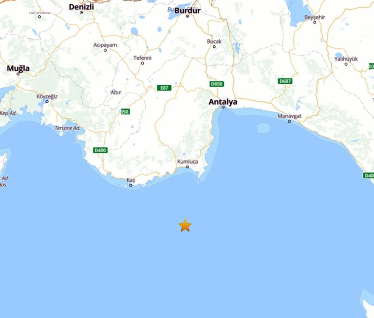 В районе Демре, Анталия, в 08:48 произошло землетрясение магнитудой 4,7. Сообщается, что землетрясение, произошедшее на глубине 16 километров, ощущалось также в Анталии и соседних провинциях. За 5 минут до этого в том же районе произошло землетрясение магнитудой 3,5.