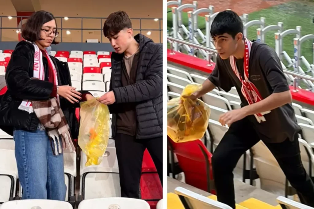После матча студенты, вдохновленные проектом «Чистая школа, чистый Эльмалы», который проводится в их районе, собрали мусор на трибунах.