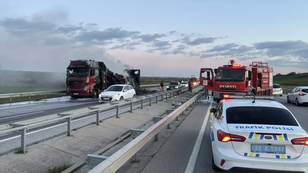 Пожар возник в грузовике с номером 34 KZS 643, управляемом М.Б., который перевозил груз помидоров из Антальи в Сербию, недалеко от Чукуркёй.